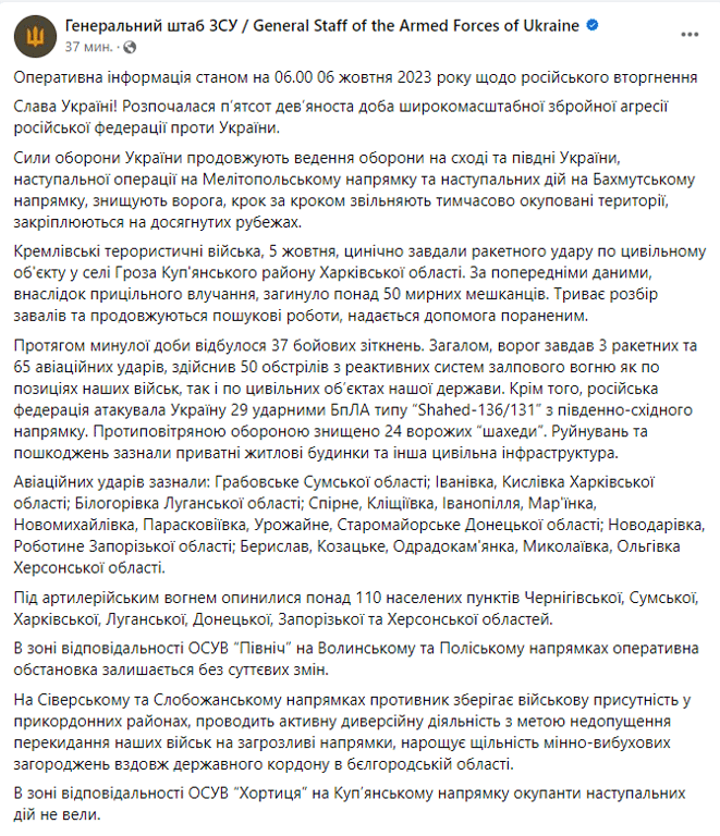 Повідомлення Генштабу ЗСУ. Фото: скриншот