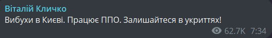 Оновлено 07:36. Мер Києва Віталій Кличко повідомив, що вибухи, які лунали в столиці — це робота ППО.