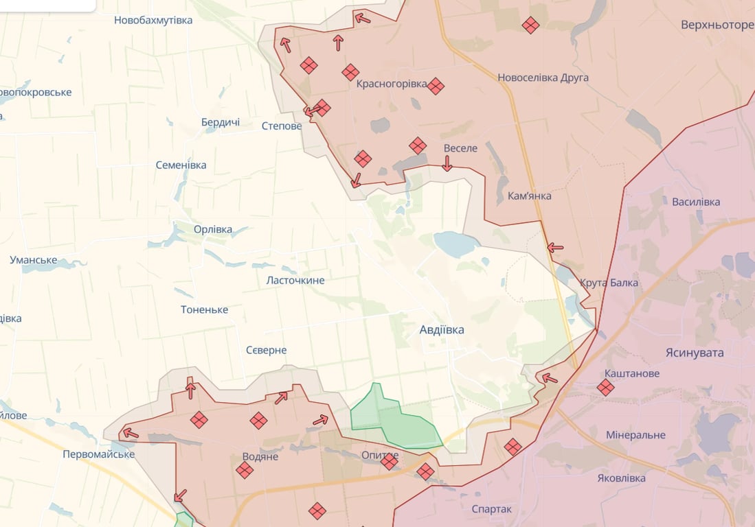 Карта боевых действий на Авдеевском направлении от Deepstate. Фото: скриншот