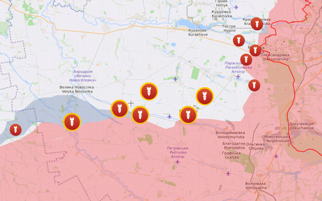 По состоянию на четверг, 30 ноября, карты Liveuamap не обнародовали сведения о боевых столкновениях украинских защитников с врагом. Однако есть информация, по каким населенным пунктам оккупанты нанесли авиаудары:
