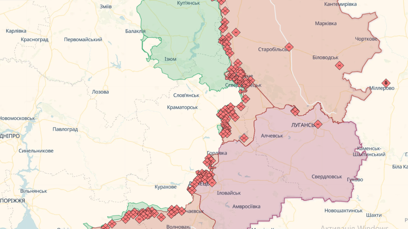 Карта боевых действий на Бахмутском направлении от Liveuamap. Фото: скриншот