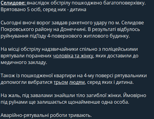 По словам Клименко, под завалами обнаружили тело погибшей женщины. Он сообщил, что под руинами может еще оставаться как минимум один человек.