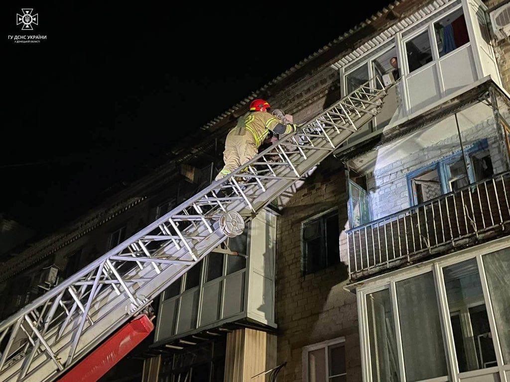 Спасатель эвакуирует женщину из обстрелянной многоэтажки в Донецкой области. Фото: ГСЧСПоследствия российского обстрела Донецкой области. Фото: ГСЧС
