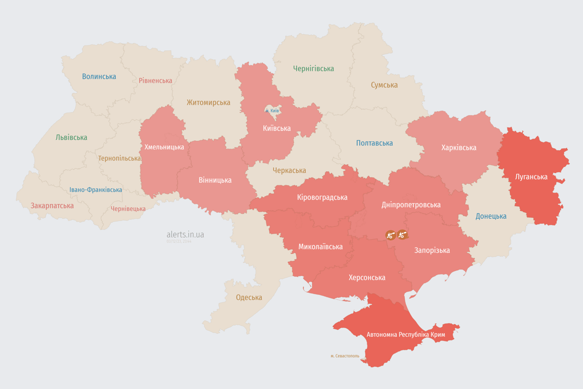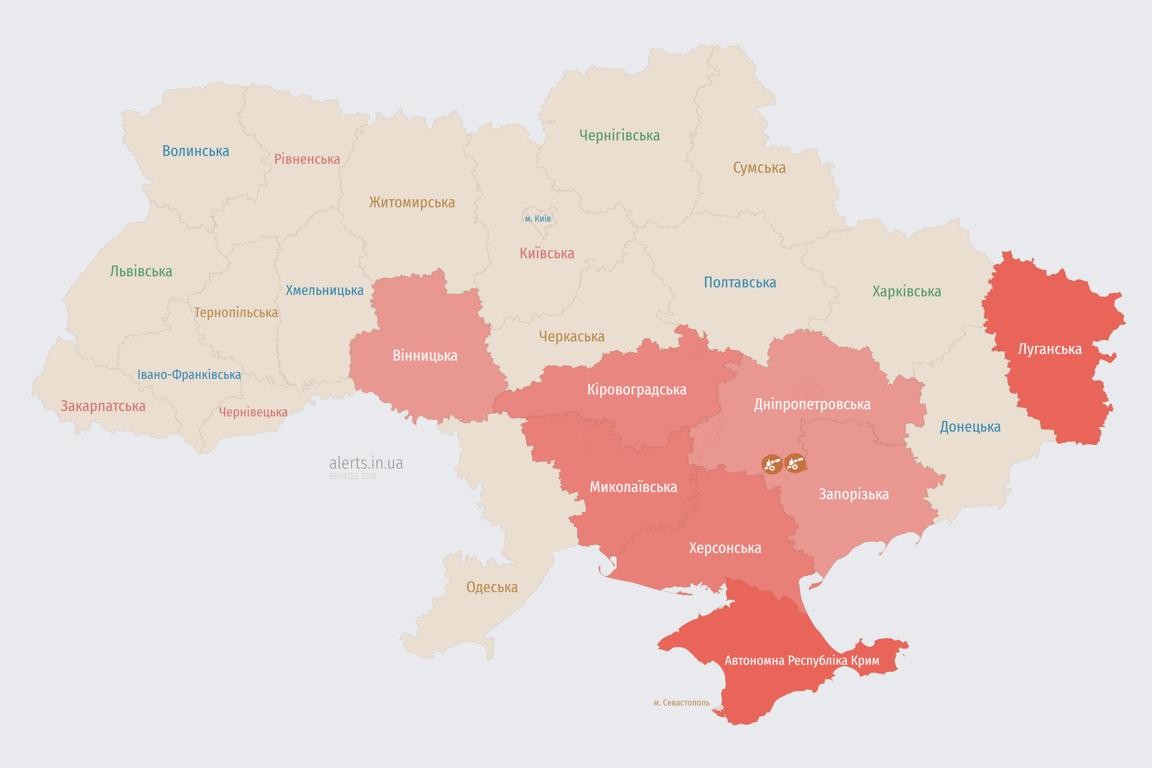 Воздушная тревога в Украине. Фото: alerts.in.ua