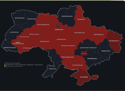 Воздушная тревога в Украине 16 октября: карта
