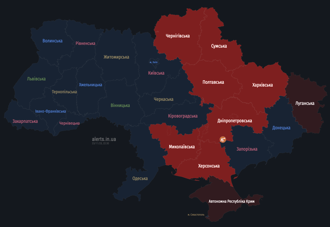 В Украине объявлена воздушная тревога. Ракетная угроза в Сумской, Полтавской и Харьковской областях.