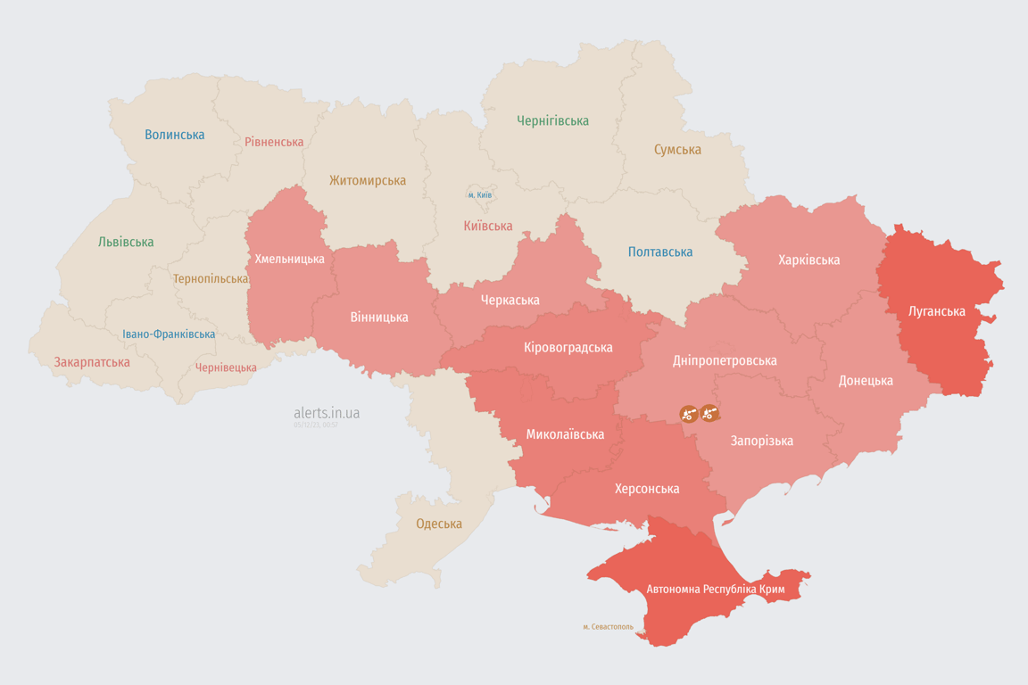 Напомним, что тревога в Украине продолжается с около 21:00 4 декабря, сначала опасность охватила восток, а затем распространилась на юг. Над регионами уже "путешествуют" беспилотники врага.