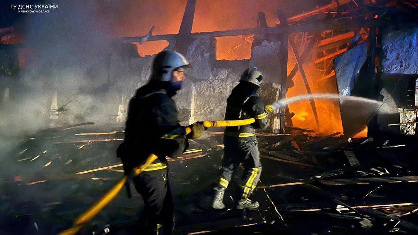 "В результате попаданий возник пожар в складских помещениях. Спасатели укротили пламя на общей площади более трех тысяч квадратных метров", —говорится в сообщении.