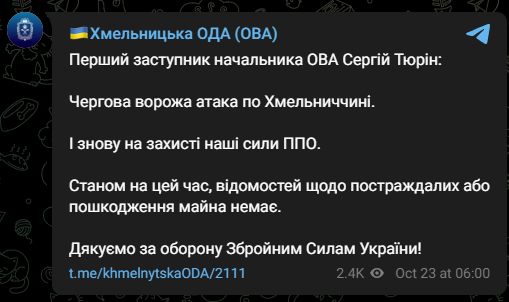 Атака на Хмельницкую область 23 октября