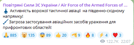 Скриншот сообщения Воздушных Сил ВС Украины